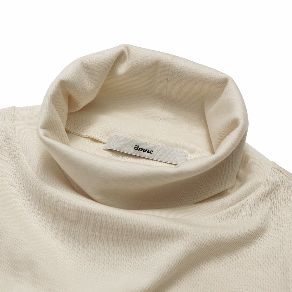 こちらは古くからアメリカではインナーウェアの生地としてポピュラーだったいわゆるサーマルと呼ばれるハニカム素材を使用したタートルネックです。インナーウェアのようなタイトなスタイルではなくロンTeeのような雰囲気で着ていただけるルーズシルエットになっています。