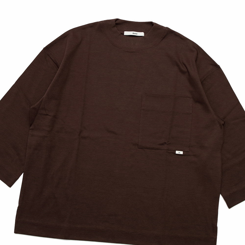 こちらはヘヴィーウェイトに編み立てた度詰め天竺地を使用した、ギュッと目が詰まって滑らかな質感ながら高級感があり上品な仕上がりの胸ポケット付き七分袖Teeシャツです。