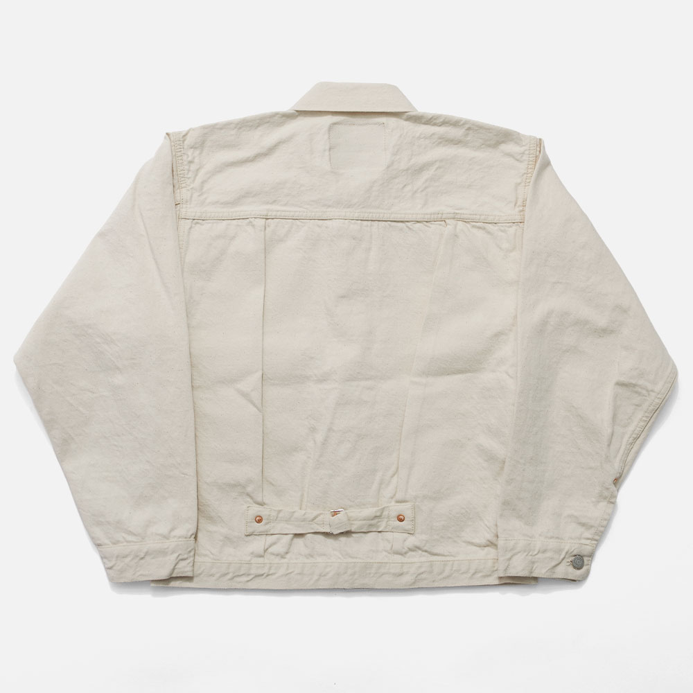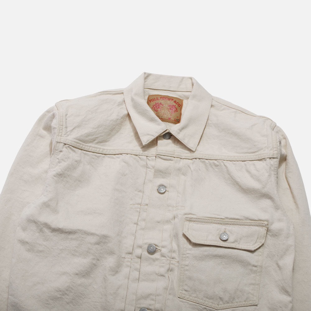 こちらはフルカウントの定番デニムジャケットとして長年愛され続けている2107 type1デニムジャケットのジンバブエコットン100%のエクリュデニムを使用したモデルです。