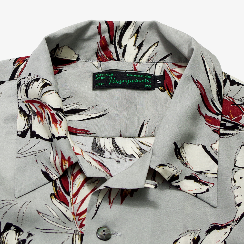 ヴィンテージを思わせるハワイアンシャツスタイルのオーソドックスなオープンカラー仕様ですが、襟のサイズやオープンカラーの開き具合など細部はかなり細かく調整して夏でも着られる涼し気なアロハシャツになりました。