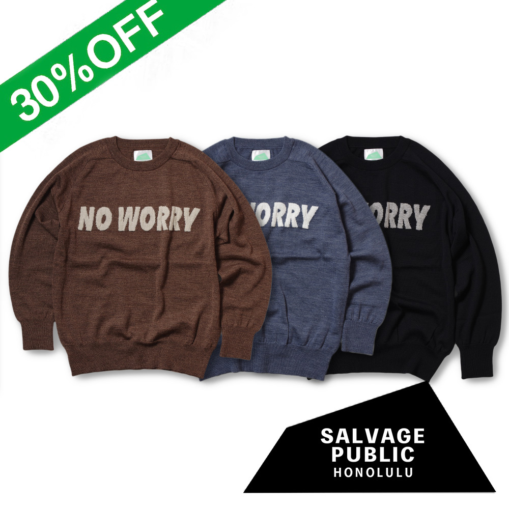 【SALVAGE PUBLIC サルヴェージ・パブリック】Wool Jacquard Crewneck Knit (NO WORRY) ウールジャカード クルーネックニット ノーウォーリー
