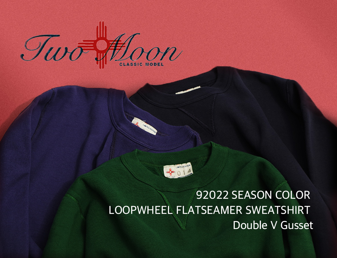 TWO MOONはこの当時のシンプル両vクルーネックスウェットをベースに#92022を製作しているので同様の風合いのある4本針フラットシーム縫製にこだわって今なお変わらぬディテールで生産してます。